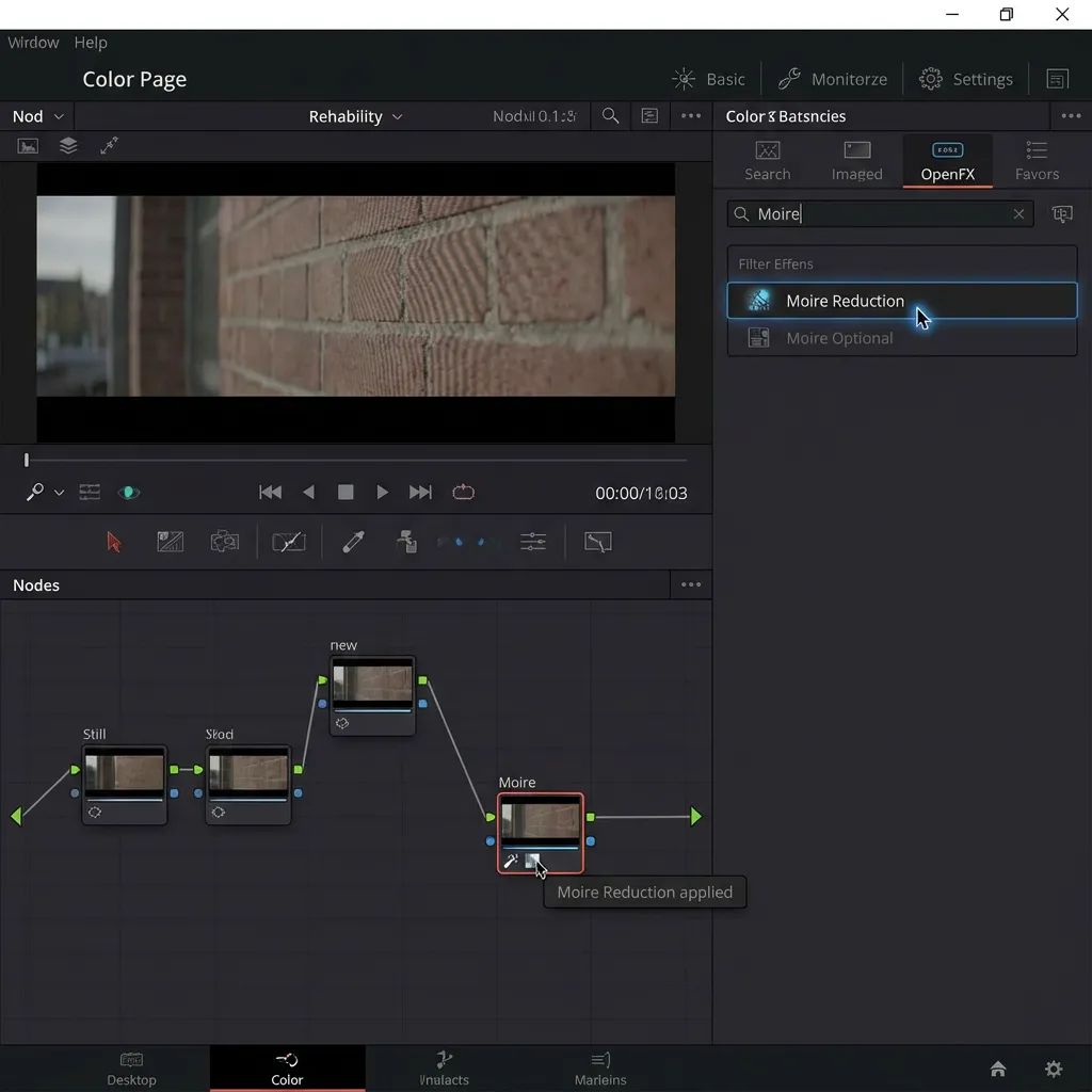 DaVinci Resolve includes a dedicated moire reduction effect: